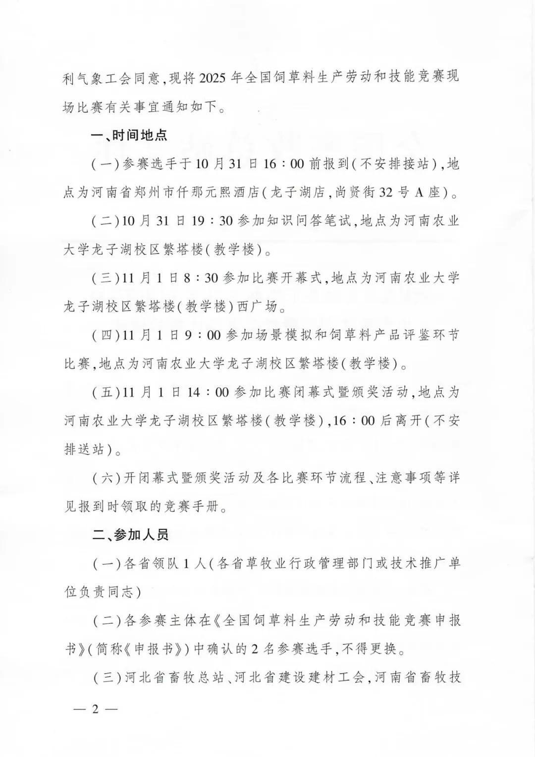 由全国畜牧总站主办的2025年全国饲草料生产劳动和技能竞赛即将于10月31日-11月1日在郑州拉开帷幕。
